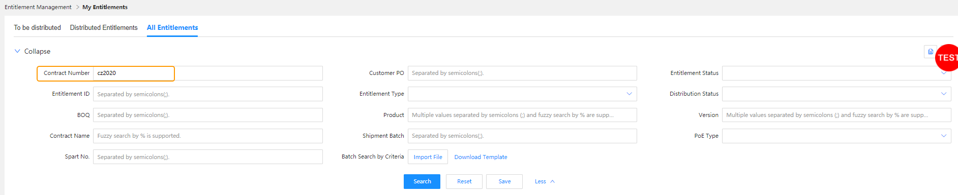 Step 1: Enter a contract number and other required information, and click Search.